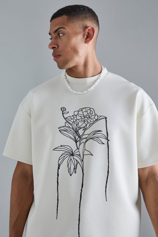 Oversized Floral Line Drawing Scuba T-shirt