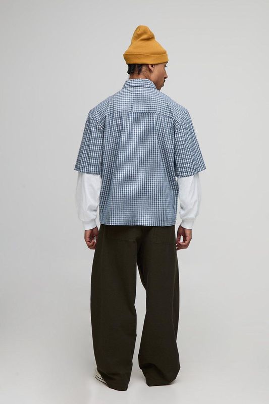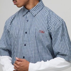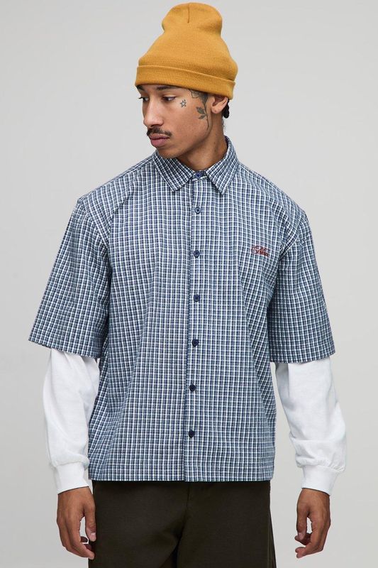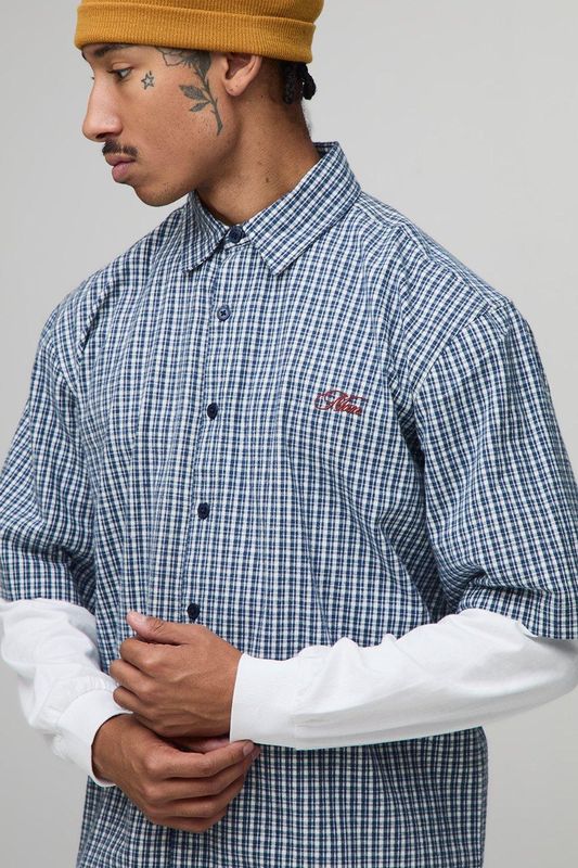 Oversized Man Embroidered Faux Layer Check Shirt