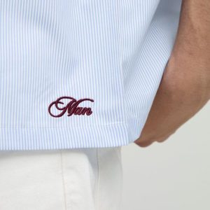 Oversized Man Embroidered Stripe Western Shirt