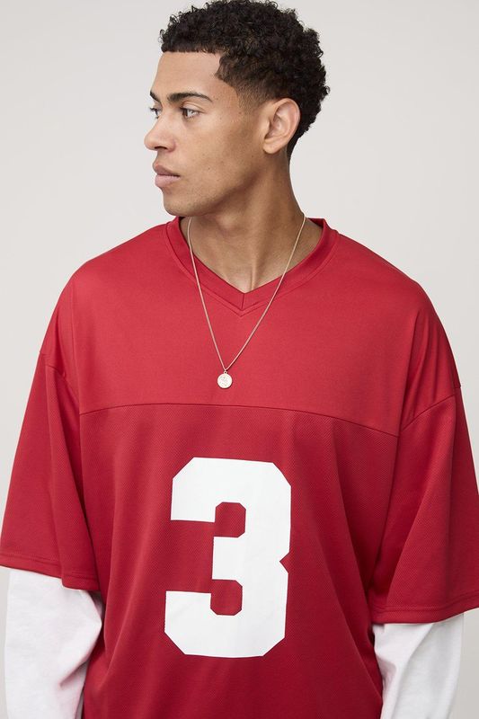 Oversized Official Man Faux Layer Mesh Sports Top