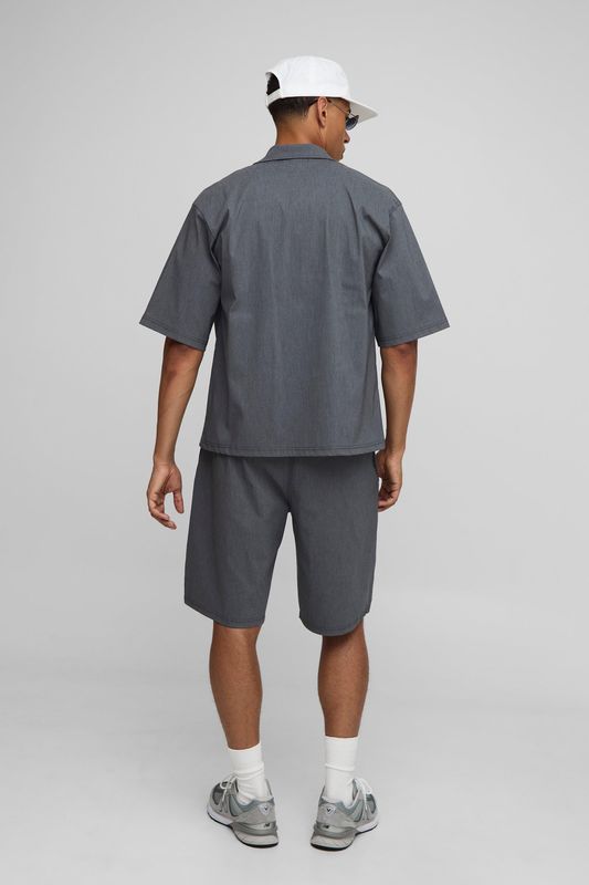 Oversized Revere Half Sleeve Marl Bengaline Shirt