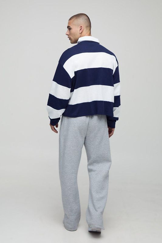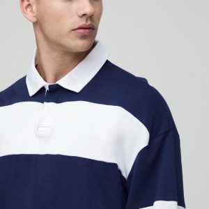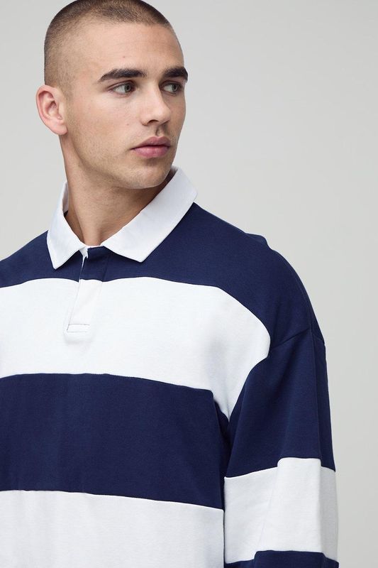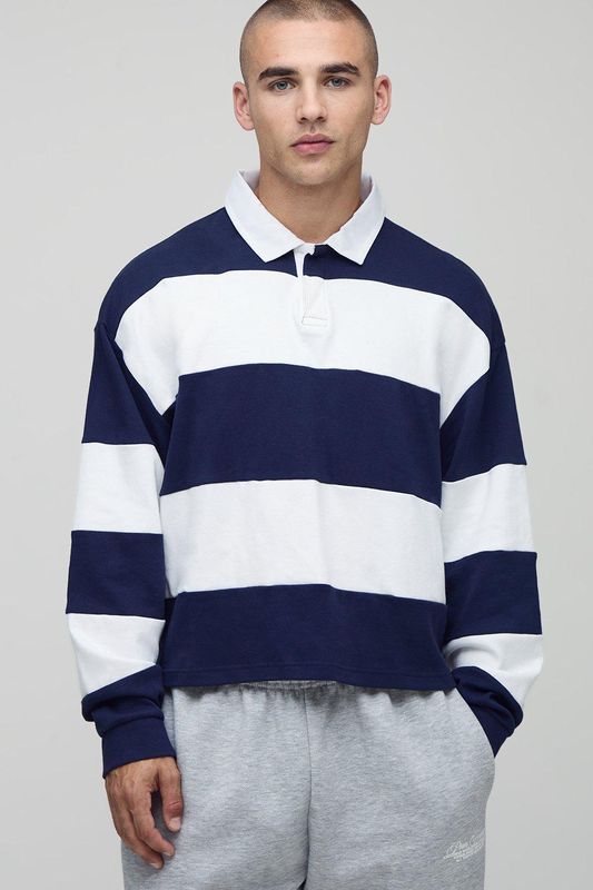 Oversized Shrunken Stripe Interlock Long Sleeve Rugby Polo