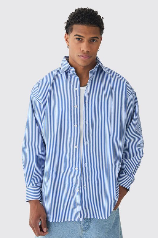 Oversized Striped Long Sleeve Shirt In Blue