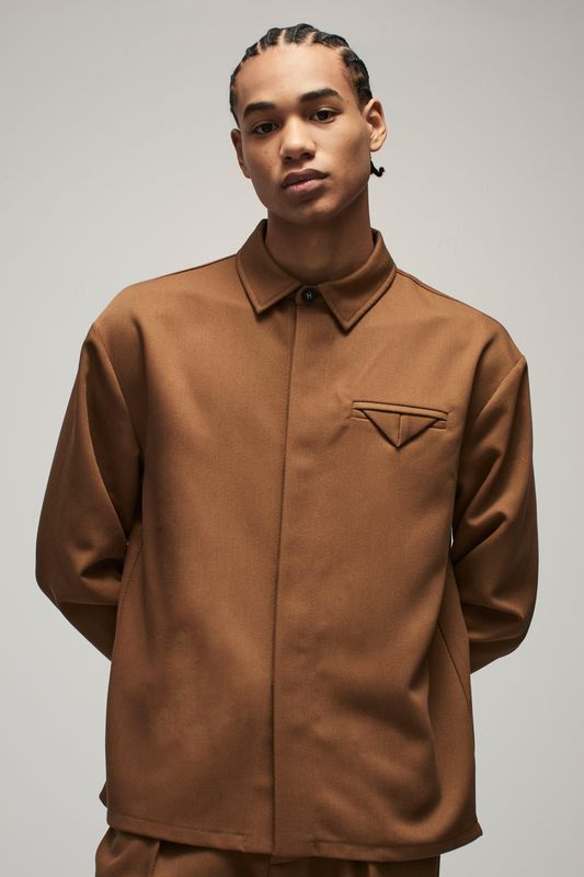 Oversized Twill Smart Shirt Jacket With Pocket Detail