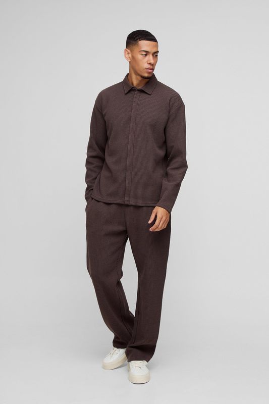 Oversized Two-tone Zip Ribbed Jersey Shirt & Straight Sweatpants Set