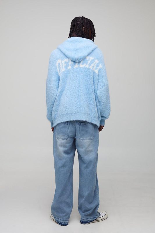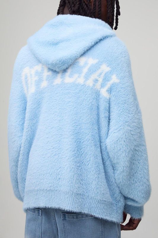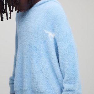 Oversized Western Graphic Extreme Fluffy Knitted Hoodie