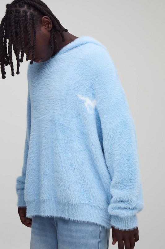 Regular Fit Hockey Embroidered Extreme Fluffy Knitted Jumper