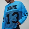Oversized Faux Sleeve Open Stitch Varsity Hockey Knitted T-Shirt