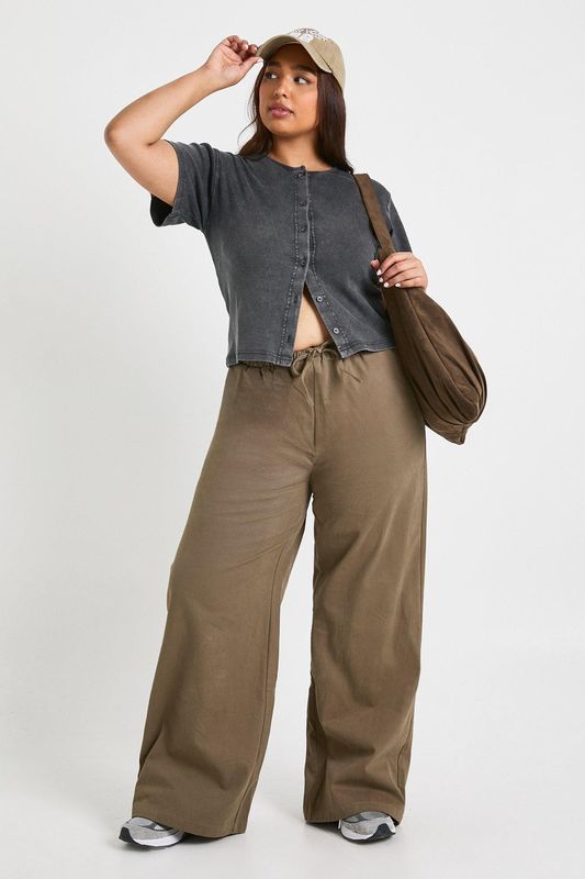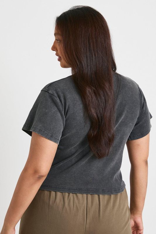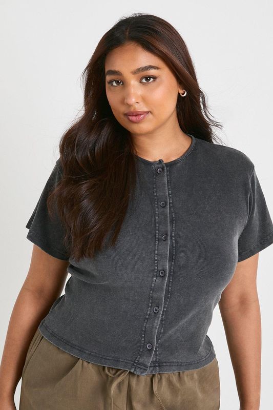 Plus Acid Wash Rib Button through slouchy 3/4 sleeve top