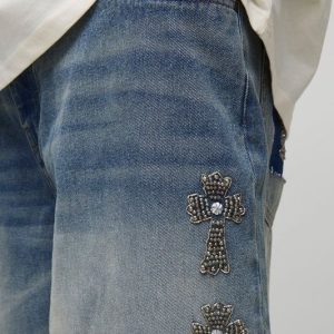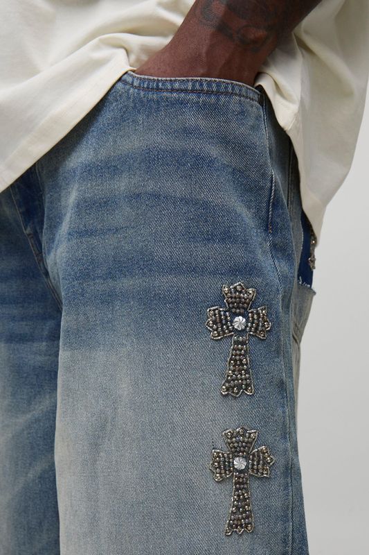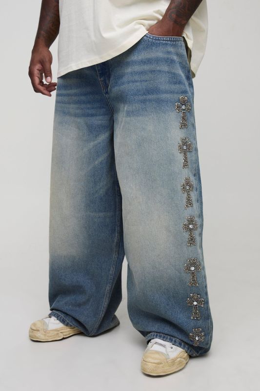 Plus Baggy Rigid Gothic Cross Embellished Jeans