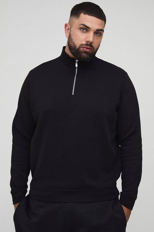 Plus Basic Oversized Quarter Zip Funnel Neck Sweatshirt