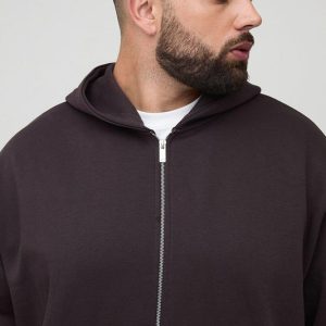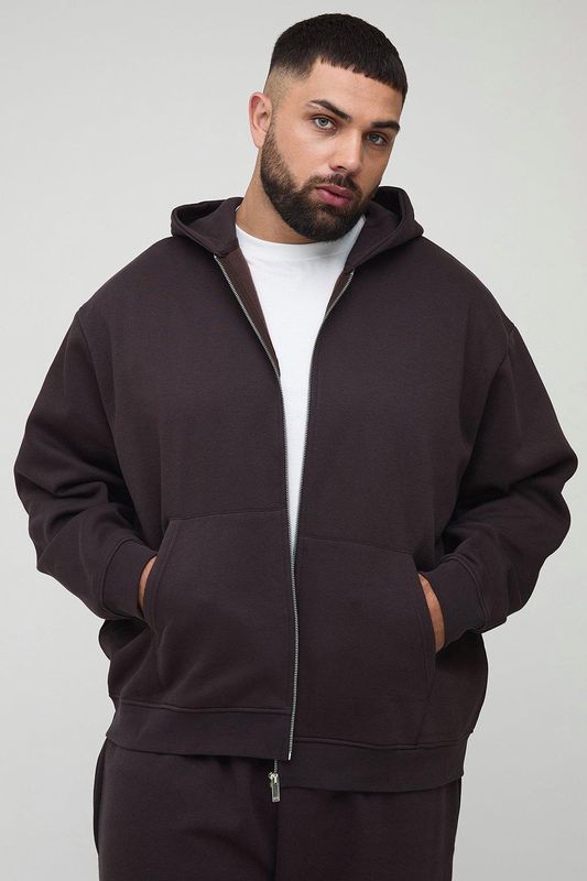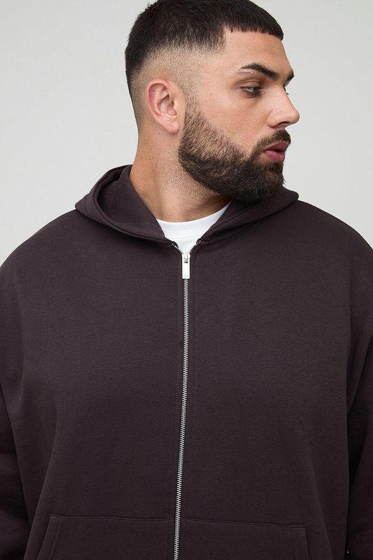 Plus Scuba Marl Embroidered Boxy Oversized Zip Through Hoodie
