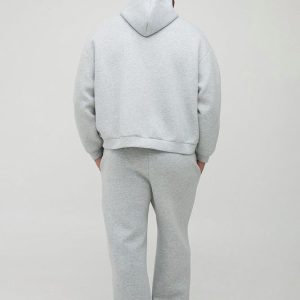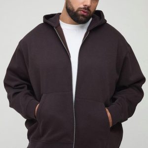 Plus Scuba Marl Embroidered Boxy Oversized Zip Through Hoodie
