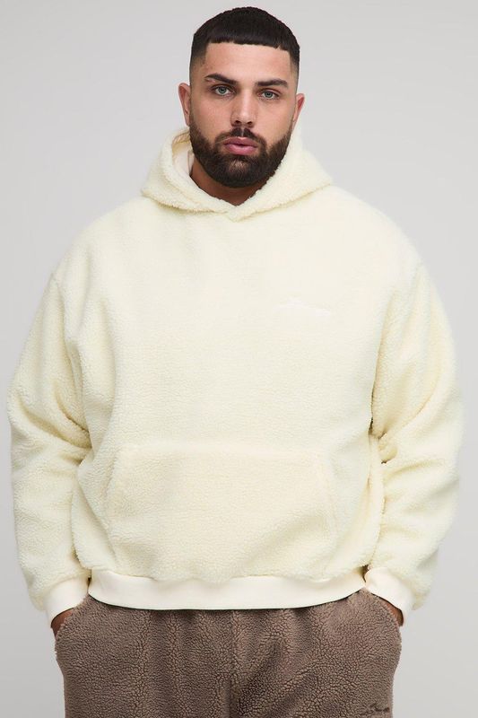 Plus Borg LMTD EDTN Embroidered Boxy Oversized Hoodie