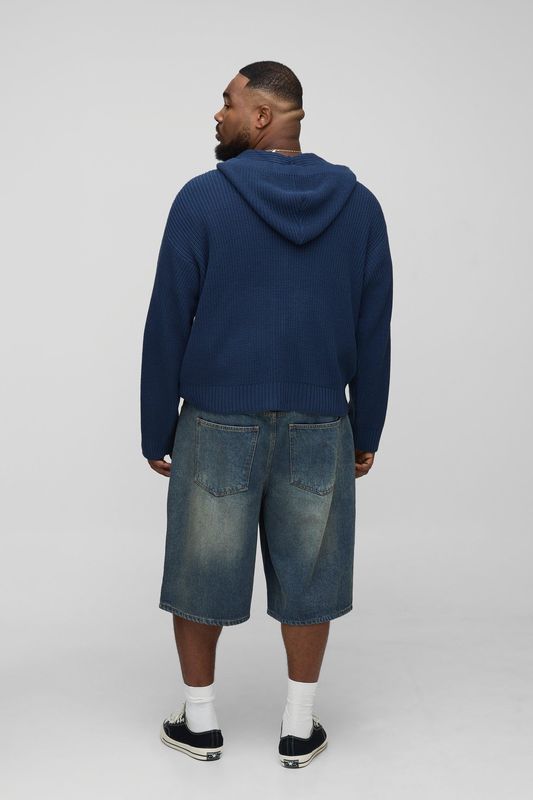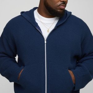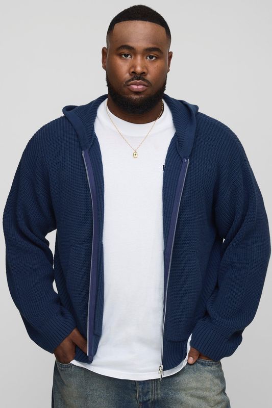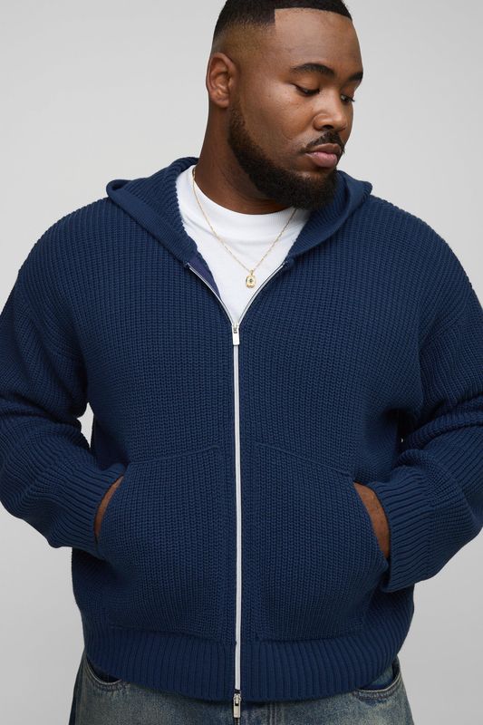 Plus Boxy Fit Ribbed Knitted Hoodie