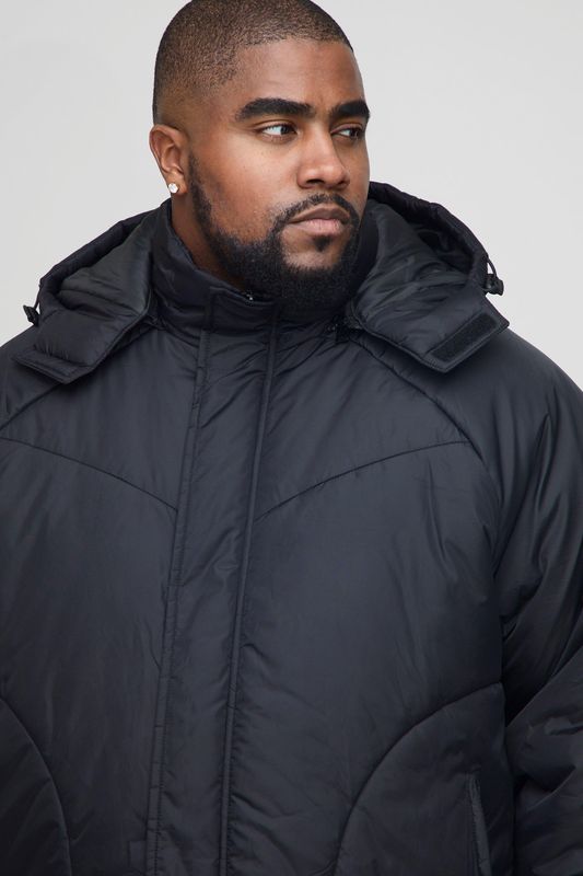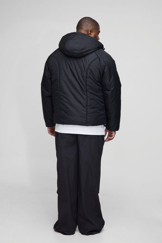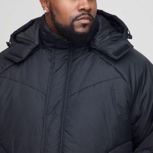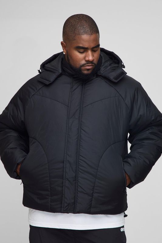 Plus Boxy Quilted Hooded Puffer Coat In Black