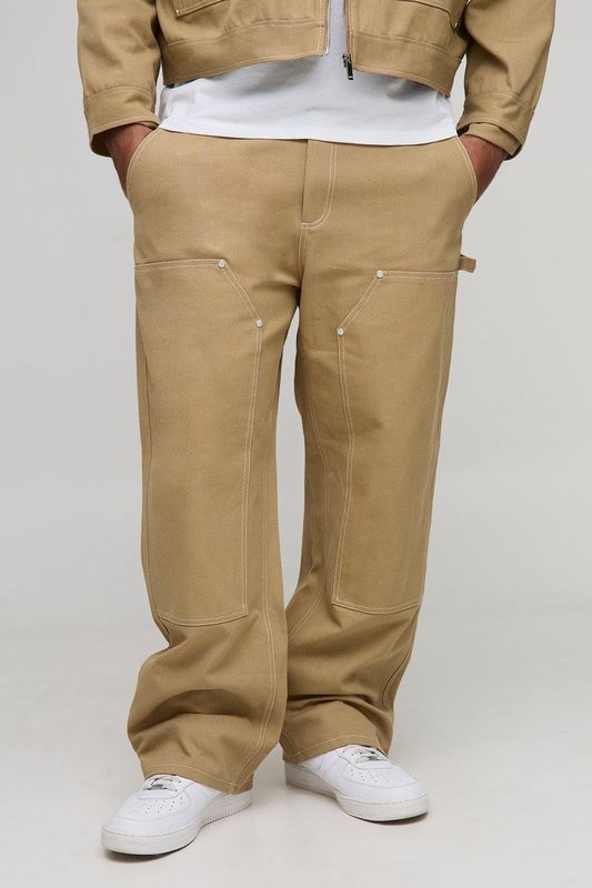 Plus Canvas Relaxed Fit Worker Trousers