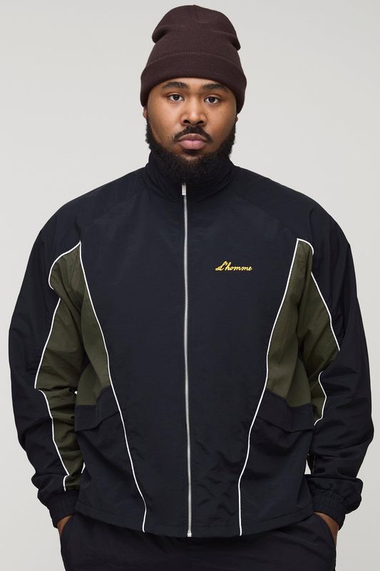 Plus Crinkle Nylon Panelled Regular Track Jacket
