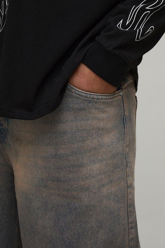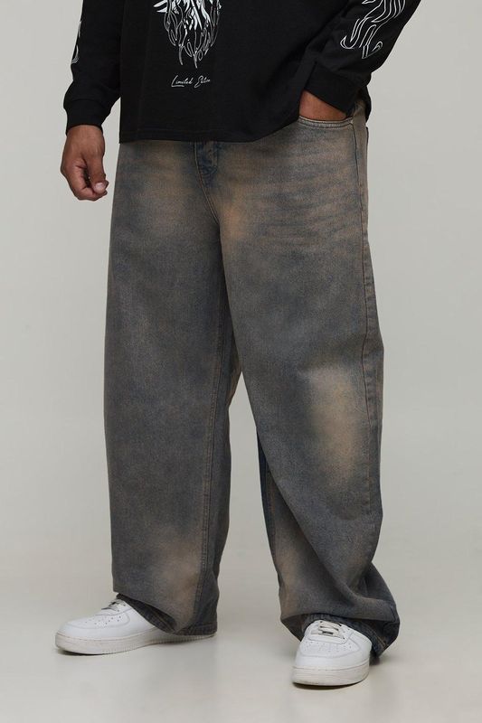 Plus Extreme Tinted Stonewash Relaxed Fit Jeans