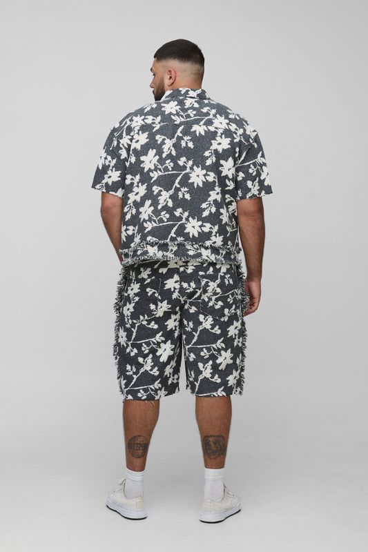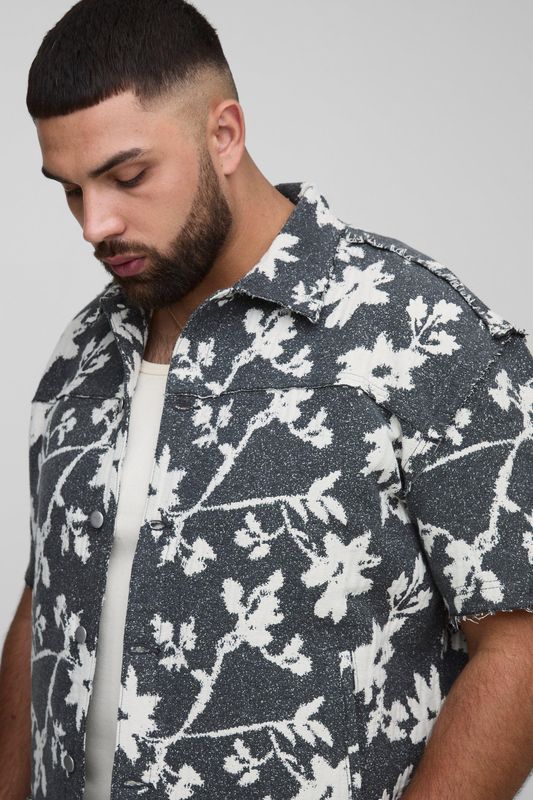 Plus Floral Tapestry Oversized Short Sleeve Overshirt