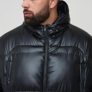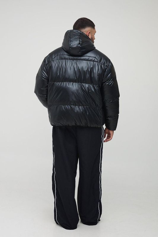 Plus High Shine Regular Fit Hooded Quilted Puffer In Black