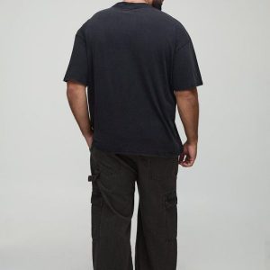 Plus Oversized Extended Neck Acid Wash Man Eagle Print T-Shirt