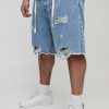 Plus Long Line Denim Jorts In Antique Blue Wash
