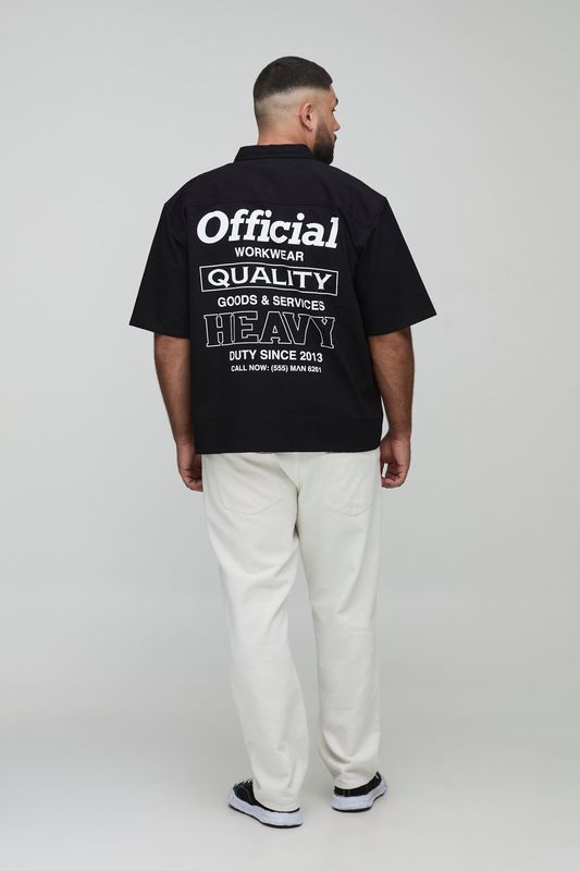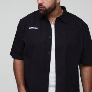 Plus Oversized Boxy Revere Linen Look Apres Tennis Embroidered Shirt