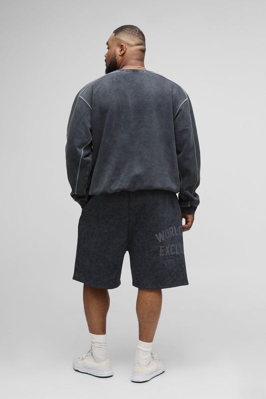 Plus Oversized Boxy Acid Wash Contrast Stitch Sweater
