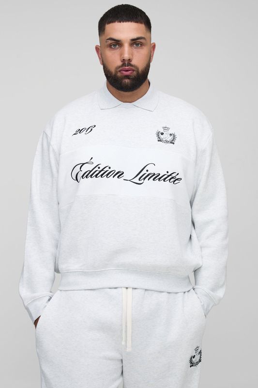 Plus Oversized Boxy Edition Collared Sweatshirt Tracksuit