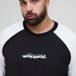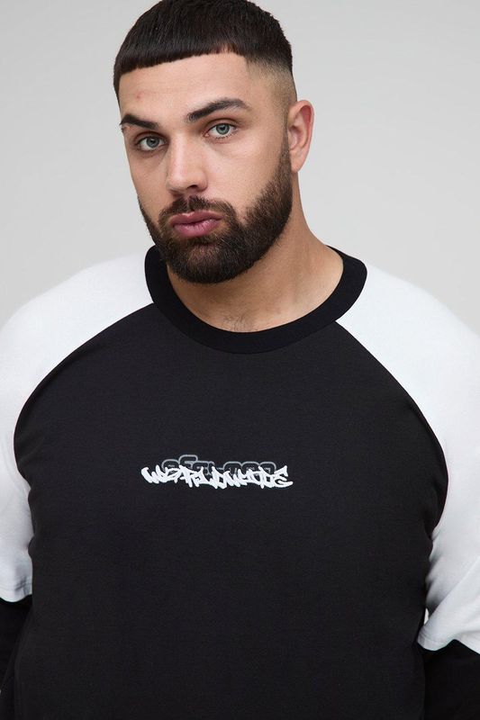 Plus Oversized Boxy Faux Layer Embroidered Graphic Raglan T-Shirt