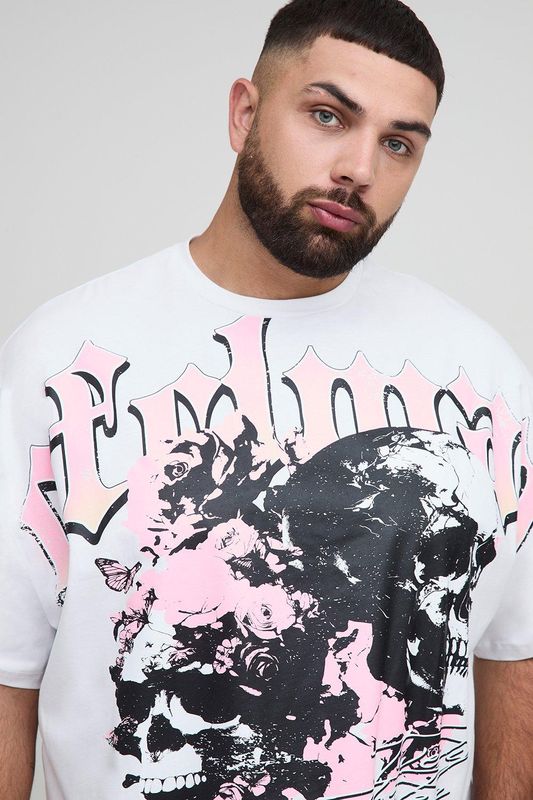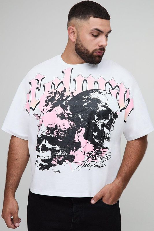 Plus Oversized Boxy Heavyweight Skull Large Scale Print T-Shirt