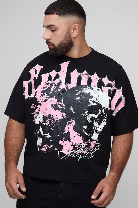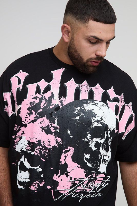 Plus Oversized Boxy Heavyweight Skull Large Scale Print T-Shirt