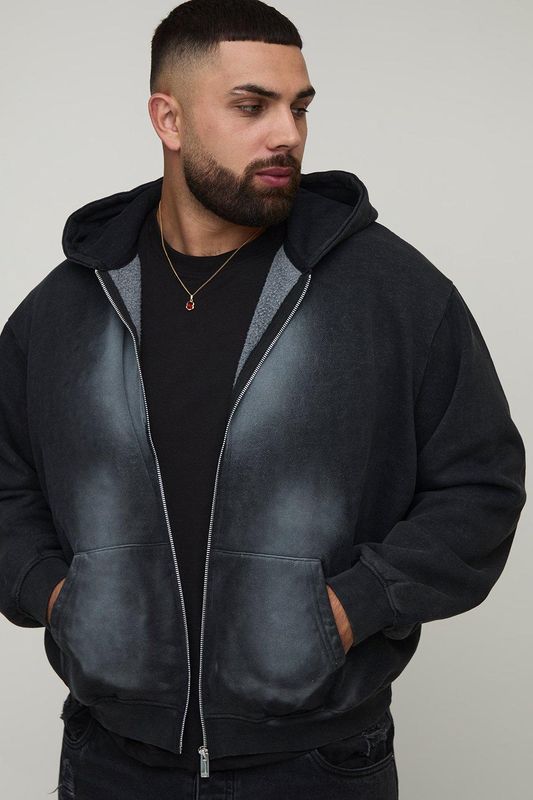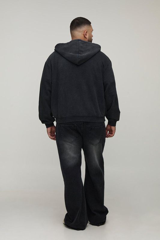 Plus Oversized Boxy Spray Wash Zip Through Hoodie