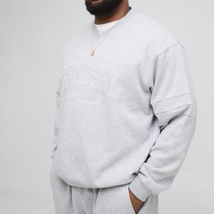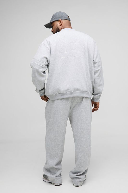 Plus Oversized Boxy V-Neck Varsity Applique Sweatshirt Tracksuit