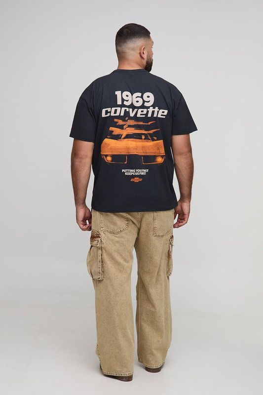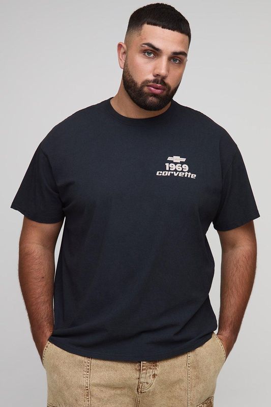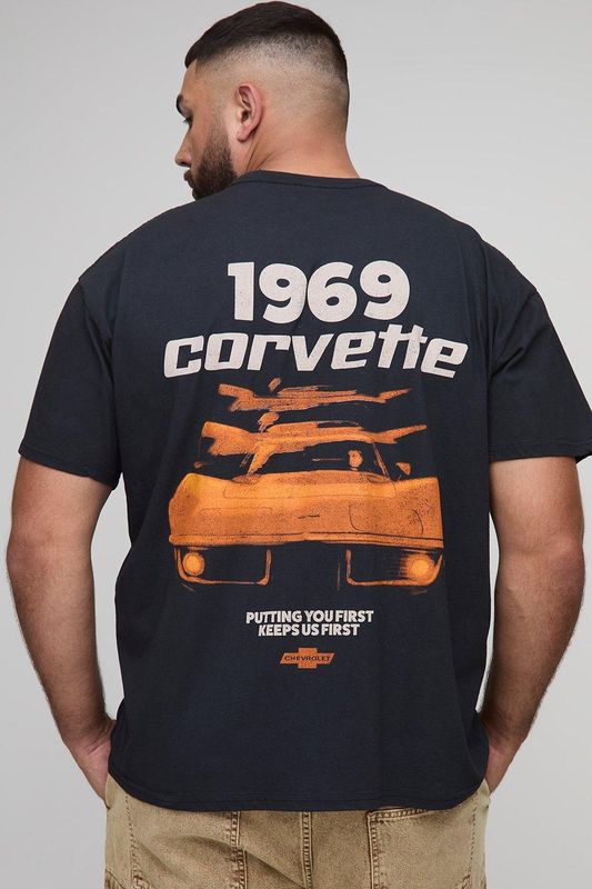 Plus Oversized Corvette License Print Washed T-Shirt