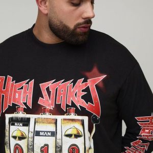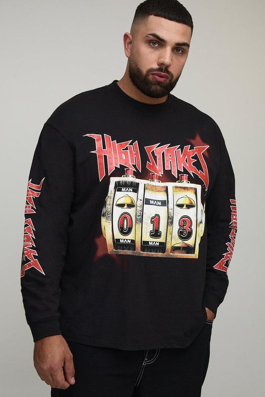 Plus Oversized Extended Neck Slot Machine Long Sleeve Printed T-Shirt