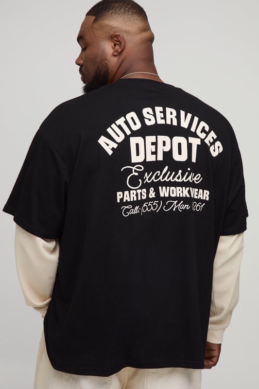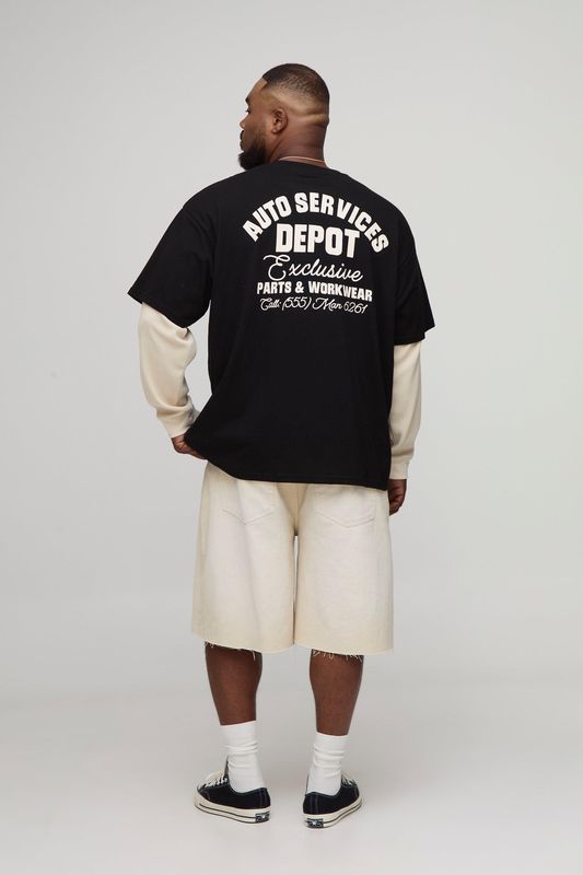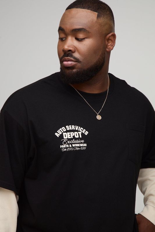 Plus Oversized Faux Layer Waffle Long Sleeve T-Shirt
