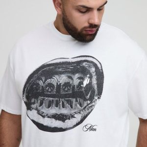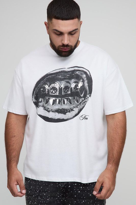 Plus Oversized Foil Print Lips Print T-Shirt