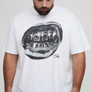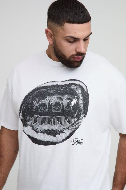 Plus Oversized Foil Print Lips Print T-Shirt