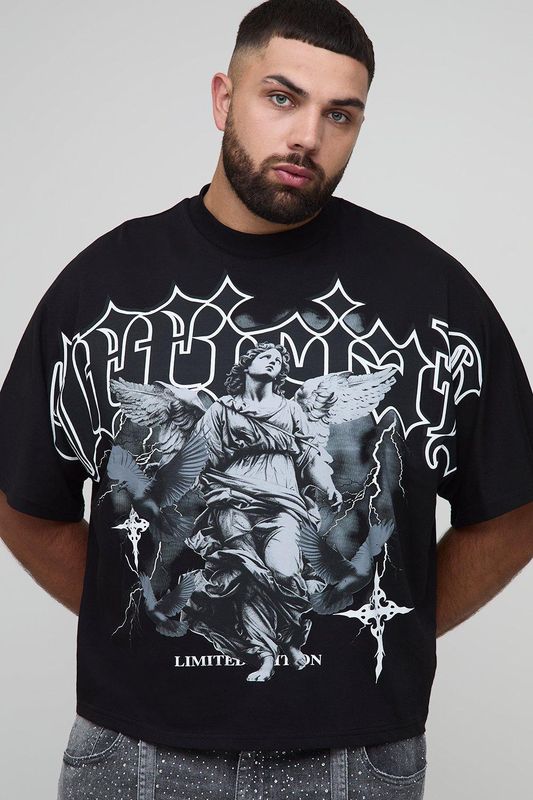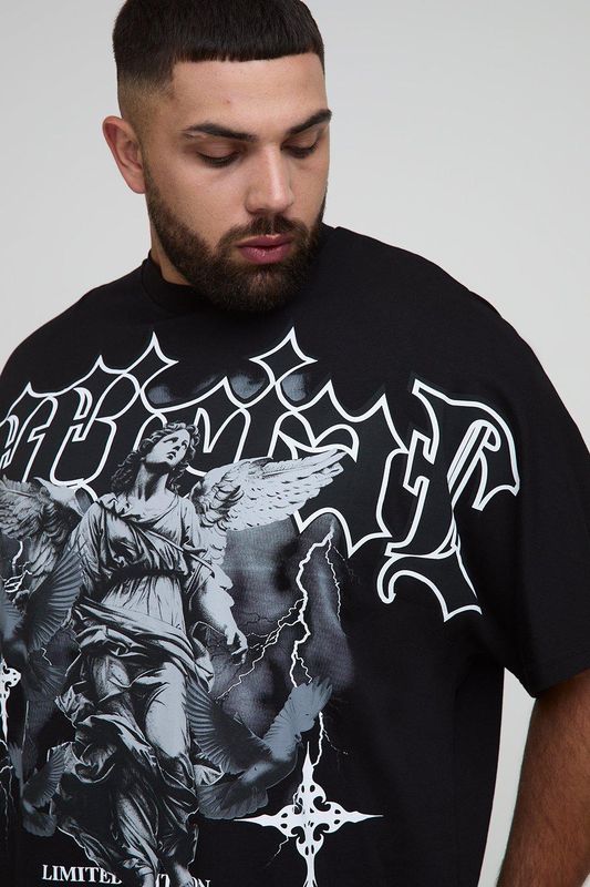 Plus Oversized Heavyweight Large Scale Print Angel T-Shirt