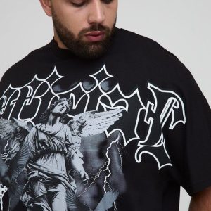 Plus Oversized Heavyweight Large Scale Print Angel T-Shirt