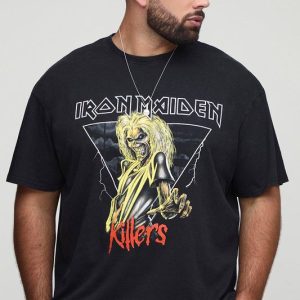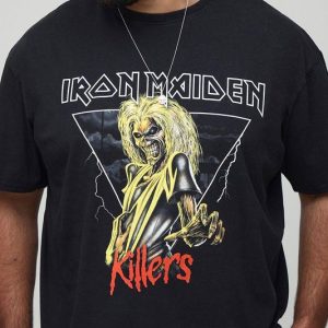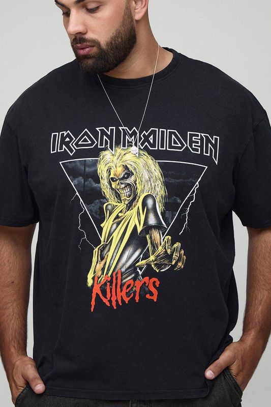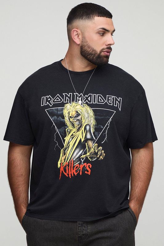 Plus Oversized Iron Maiden License Print Acid Wash T-Shirt