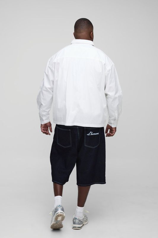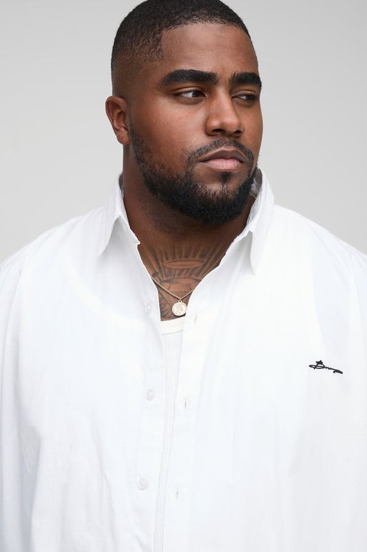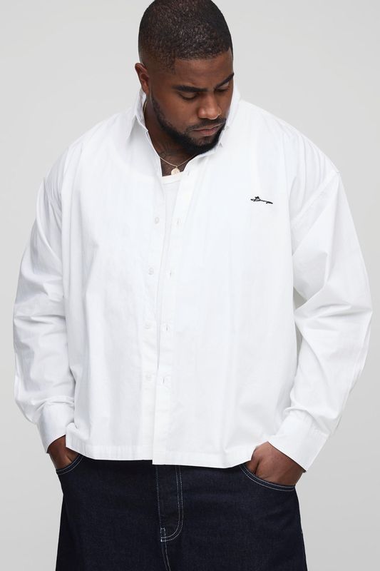 Plus Oversized Long Sleeve Embroidered Poplin Shirt