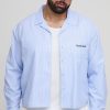 Plus Oversized Boxy Revere Linen Look Apres Tennis Embroidered Shirt