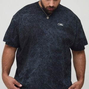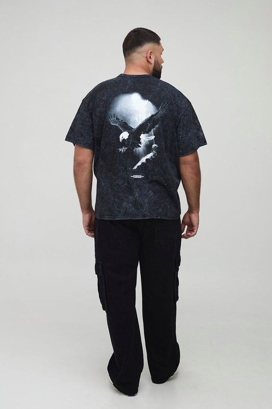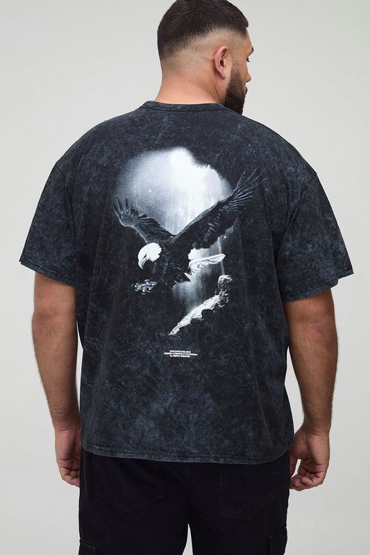 Plus Oversized Man Acid Wash Eagle T-Shirt
