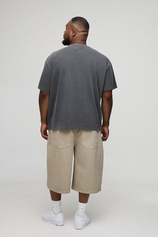 Plus Oversized Man Daisy Ski Mask Print Washed T-Shirt