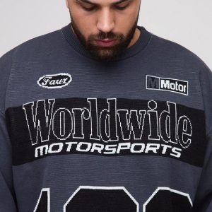 Plus Oversized Moto 100 Long Sleeve Knitted T-Shirt