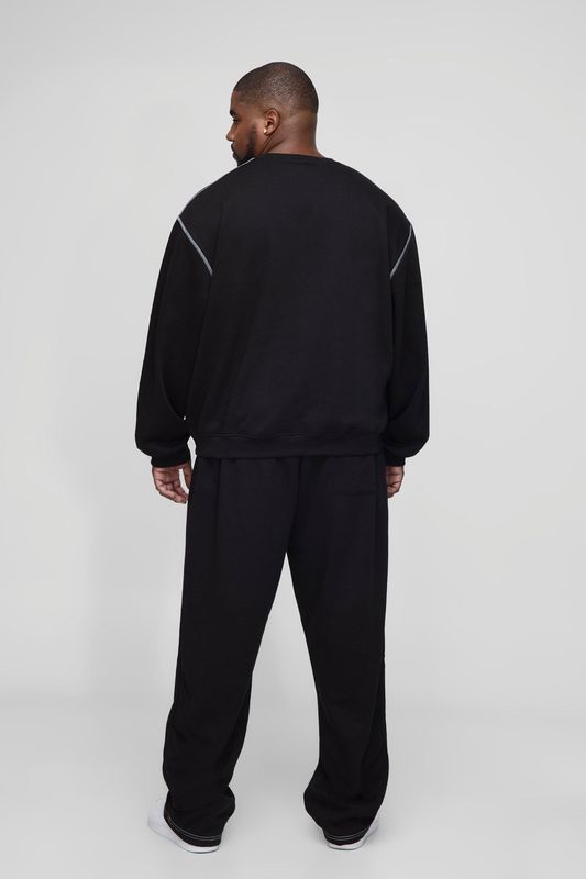 Plus Oversized Official Contrast Stitch Flat Knit Joggers
