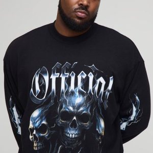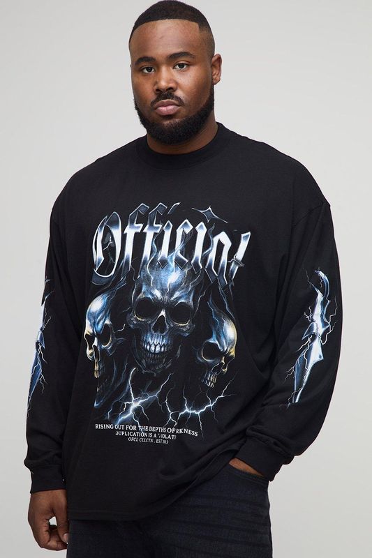 Plus Oversized Official Skulls Large Scale Long-sleeved Print T-Shirt